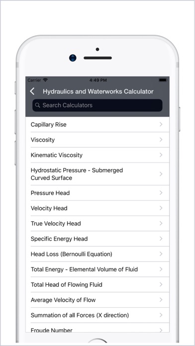 HYDRAULICS : • Capillary Rise • Viscosity • Kinematic Viscosity • Hydrostatic Pressure - Submerged Curved Surface • Pressure Head • Velocity Head • True Velocity Head • Specific Energy Head • Head Loss (Bernoulli Equation) • Total Energy - Elemental Volume of Fluid • Total Head of Flowing Fluid • Average Velocity of Flow and more up to 94 Calculators.