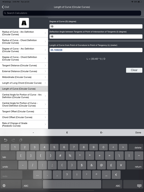 HIGHWAY & ROAD : • Radius of Curve - Arc Definition (Circular Curves) • Radius of Curve - Chord Definition (Circular Curves) • Degree of Curve - Arc Definition (Circular Curves) • Degree of Curve - Chord Definition (Circular Curves) • Tangent Distance (Circular Curves) • External Distance (Circular Curves) • Midordinate (Circular Curves) • Length of Curve (Circular Curves) and more up to 37 Calculators.