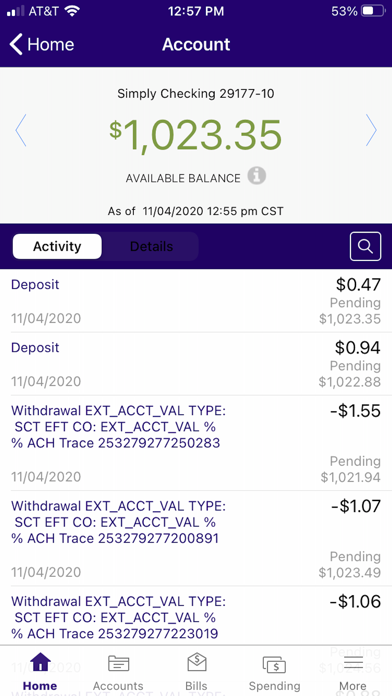 - Check your latest account balance and search recent transactions by date, amount, or check number.
