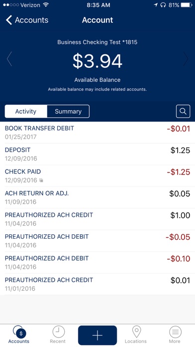 - Check your latest account balance and search recent transactions by date, amount, or check number.
