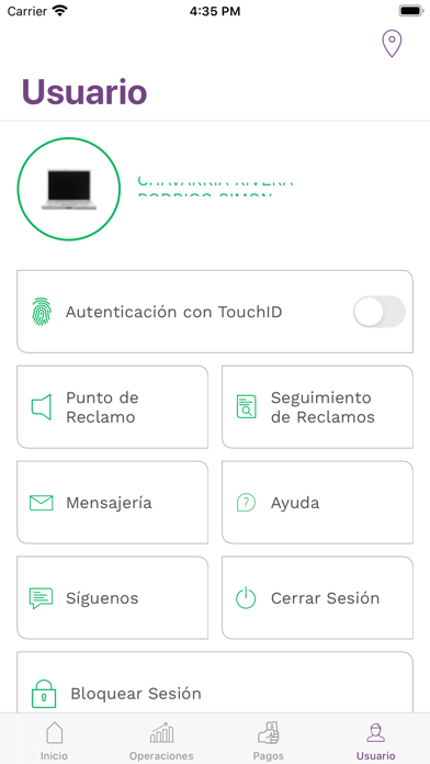 • Créditos: Revise el estado de sus créditos y realice el pago de los mismos desde su dispositivo el momento que usted desee.