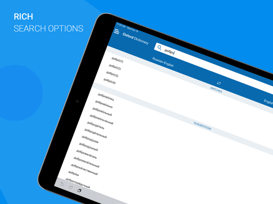 Oxford Russian Dictionary is the guaranteed leader in its field. This fully updated and revised edition of the renowned dictionary includes new supplementary material with a correspondence section, grammar help, and special treatment of commonly used, but tricky words. Regarded as one of the flagship products in Oxford University Press catalog of dictionaries, the app features advanced search and learning tools designed by a vastly experienced developer.