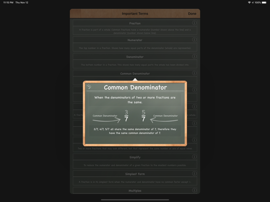 MathBoard Fractions is a comprehensive fractions app that will help all students master fractions easily. MathBoard Fractions consists of activities that will teach terms, provide interactive examples, quiz knowledge, as well as walk through solutions.