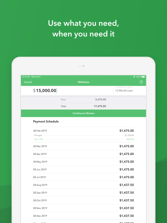 Applying for Funding is free, and you’ll only pay for the capital you use if your business is approved. Our app is a simple way to review your business’s account, make payments and take funds. Repay small business loans for up to 18 months and always review payment details and schedules before taking a loan.