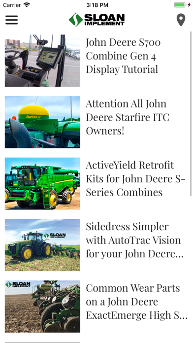 Established in 1931 Sloan Implement is one of the largest John Deere Dealerships in the world. With its headquarters in central Illinois, Sloan’s dealerships provide new and used John Deere parts, equipment, and service. Our App will help you find a location nearest, find dealership personell directory, contact information, driving directions, and weather. Schedule service appointments, browse our products and even order through our app.