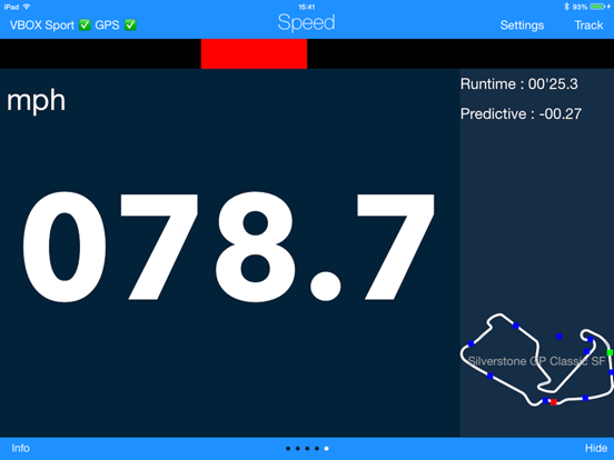 Collecting GPS data at 20 times per second the VBOX Sport provides a level of accuracy currently unheard of with iPhone and iPad apps. Our LapTimer app uses this data to provide you with accurate lap times and predictive lap times for your vehicle.
