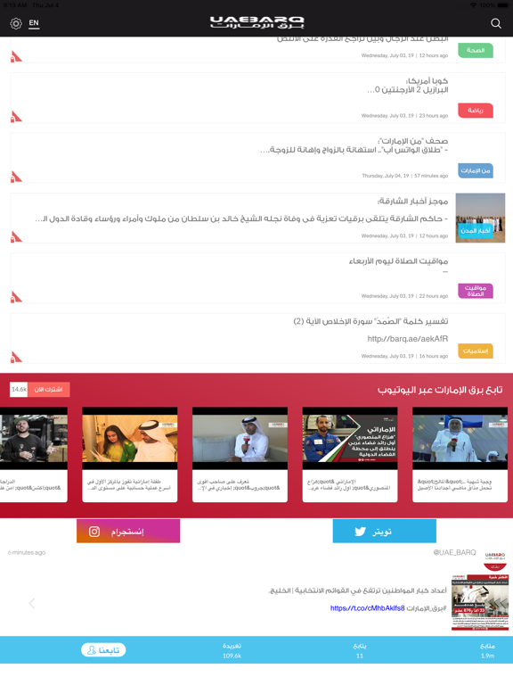 Also you can follow UAE BARQ on all of its Social media channels like Twitter and YouTube, Notifications are also supported to deliver the news in lightning speed.