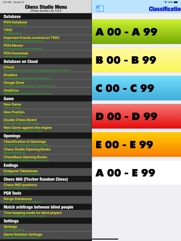 Chess Studio is the first and only application for iPhone and iPad able to completely manage chess database and games in PGN format.