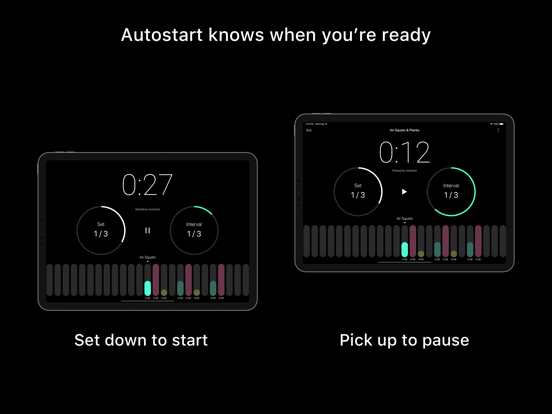 Pacer knows when you are holding your phone and when you set it down. With Autostart enabled, once you open a timer just set it down to start it. Pick it up again to pause. Visit Settings in the app to enable Autostart.