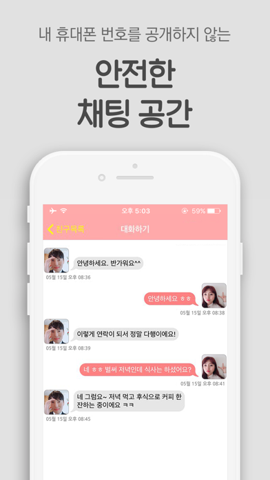 채팅기능: 부담없이 최종연결된 친구와 채팅으로 대화하실수 있어요.