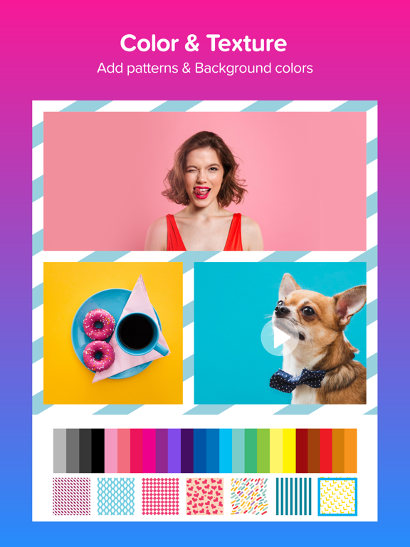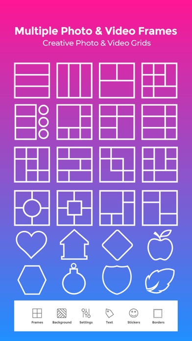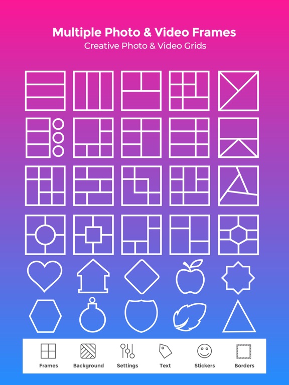 video frame helps you combine multiple photos and videos into amazing looking cells / frames / collage and share them with world via tons of share options. With 100 fully adjustable frames, rounded corners, shadows, plenty of patterns and an easy color picker you will always have a unique and distinctive look.