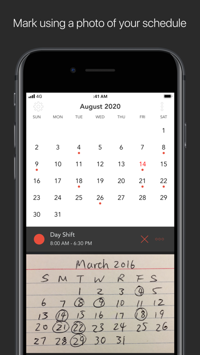 • Have a photo of your schedule? Conveniently open it in Shifty and mark dates side by side