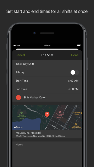Shifty makes it easy to add and view events that always change, which is common among shift workers like nurses, doctors, retail staff, etc. These schedules are usually unpredictable, and adding them to a calendar is not the best experience on traditional calendar apps. Shifty allows users to easily tap to mark their work days, and export shifts all at once with the same start/end times. Users can further take advantage of iCloud calendar sharing to let family and friends see which days they work.