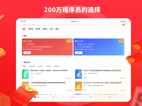 现有课程涵盖HTML/CSS、JS、Swift、jQuery、AngularJS、PHP、JAVA、Vue、Linux、Python、flutter、springboot、docker、React、iOS 、Photoshop、小程序、大数据、云计算等各类开发语言和方向,实工具讲解,紧跟技术头条、新闻热点、敏捷开发、快速更新,专注服务于华人码农。