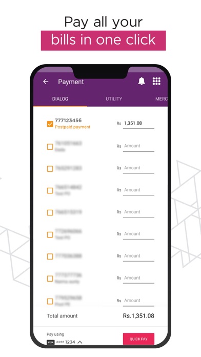 Save your petty cash. Enter your Visa/Master card into the My Dialog app to make convenient payments anywhere, anytime.