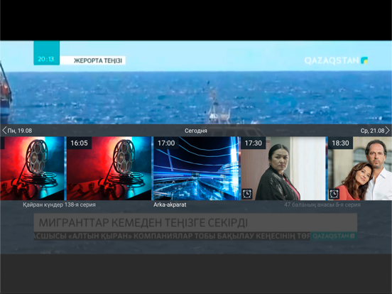 просмотр казахстанских и зарубежных телеканалов в режиме реального времени;