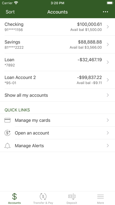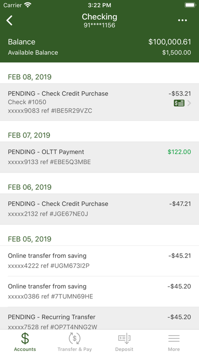 -Check your latest account balances and search recent transactions by date, amount, or check number.