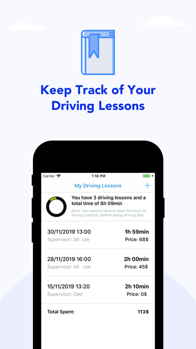 - Keep a track of your driving lessons, input your lessons, add times and dates, traffic conditions, notes and lesson costs