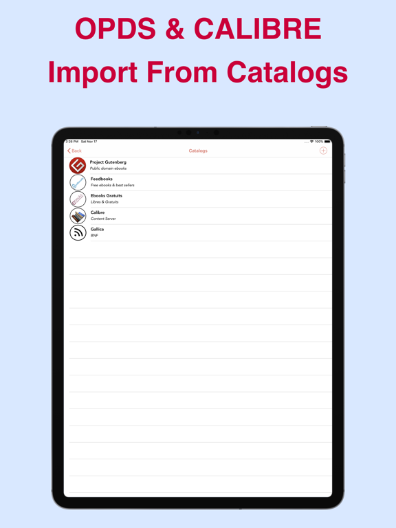 - Import individual ebooks from Calibre (through the Calibre Content Server)