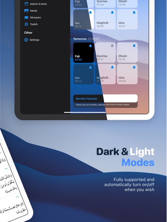 - Use 3D touch shortcuts to quickly accomplish tasks such as accessing your daily prayers dashboard or locating the Qibla direction