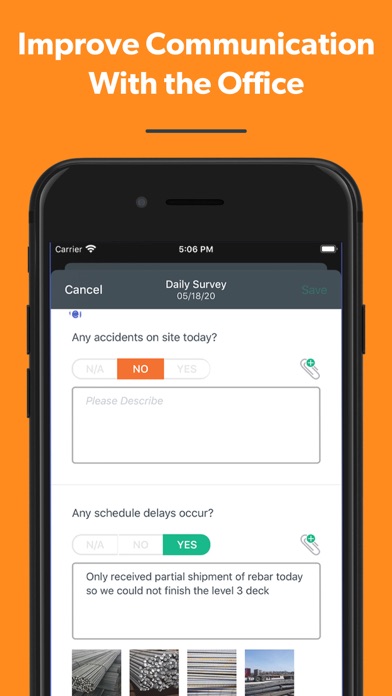 Add construction photos, videos, and attachments to your daily report and, at the end of the day, sign and email it right from your phone or tablet!