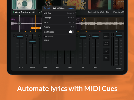 - Send MIDI Cues to control lyrics, lights, and more with a MultiTracks Cloud subscription