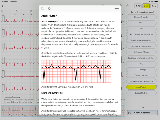 The app is very challenging because it uses REAL patients' ECG recordings, and many of them are complicated with multiple diseases involved. The test need you to pick all interpretations, to get a 3-star rate. Wrong picks will buzz your iPhone / iPad and give you a minus score.