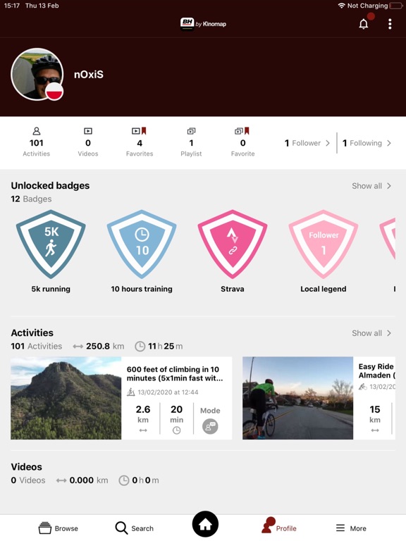 Play a sport with BH by Kinomap as it turns your exercise bike, crosstrainer, treadmill or rowing machine into a powerful and fun fitness. Choose a video and train on the BH by Kinomap app. The app will adjust the incline or resistance in real time according to the elevation profile or structured workout.