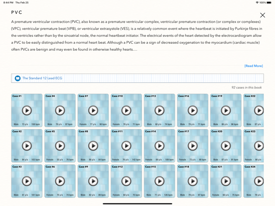 This app allows you to view ECG recordings in real time demonstrating a wide range of different cardiac abnormalities. You can also read concise explanations of how each abnormality manifests itself in ECG findings. The ability to view these ECG recordings as often as desired makes this a valuable tool for mastering the nuances of ECG interpretation.