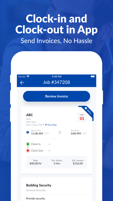 - No more submitting invoices. By checking in/out of your shift we track your hours/location, and automatically provide reports back to the company that hired you.