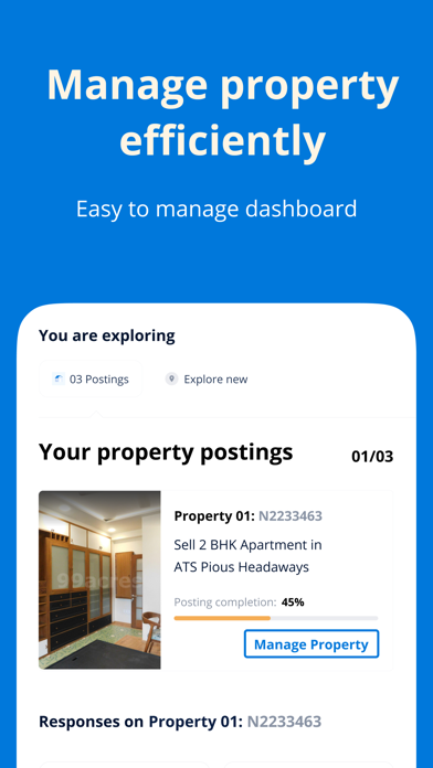 99acres is India’s leading property search App. It is the one-stop solution to all your real estate needs. The award-winning app has helped millions of users to buy, sell, rent properties. Download our app now and start your real estate journey with the highest rated property app.