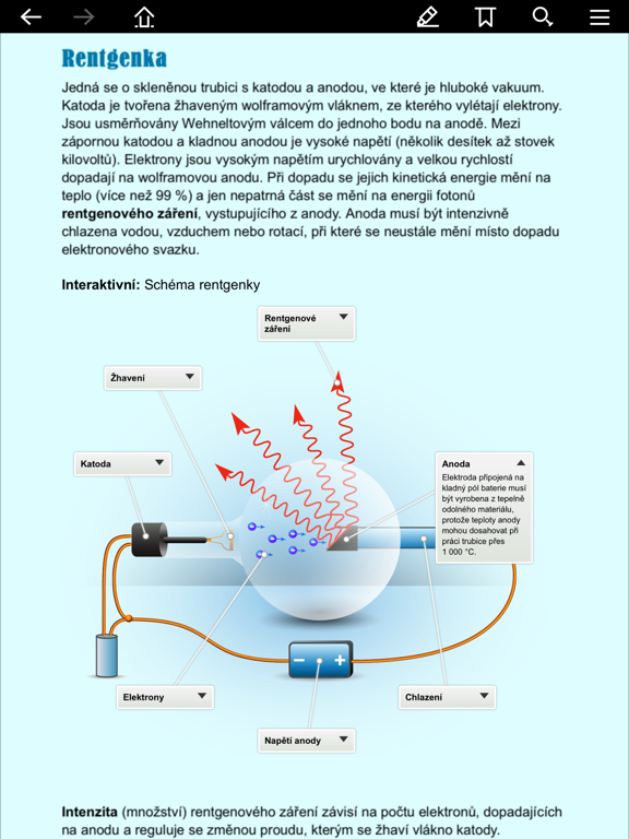 V programu se můžete dozvědět jak bylo RTG záření objeveno, jaký je fyzikální proces vzniku i jak se dnes RTG záření využívá v medicíně, průmyslu, umění a dalších oblastech. Vše je doplněno obrázky, schématy i animacemi.