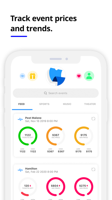 Track Events – Not ready to buy? Keep track of average ticket prices and available inventory for any event, so you can make an informed decision and buy when you're ready.
