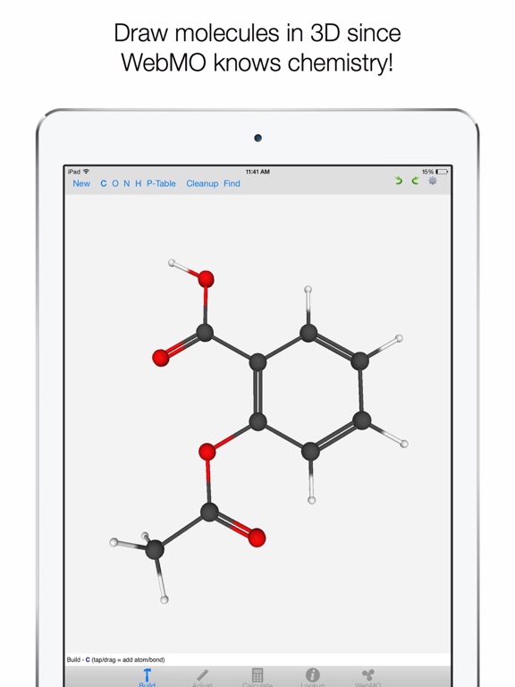 - Build molecules by drawing atoms and bonds in a 3-D molecular editor, or by speaking the name (e.g., “aspirin”)