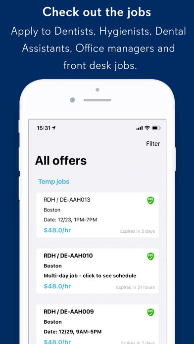 Working on Stynt app is easy. Thousands of offices are constantly hiring dentists, hygienists, assistants, office managers and front desk professionals.