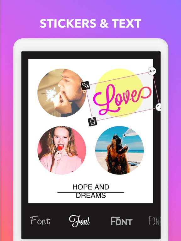 * Awesome Layout & Grids: Enhanced design of layout feature with adjustable frames and borders make your photos more extraordinary.