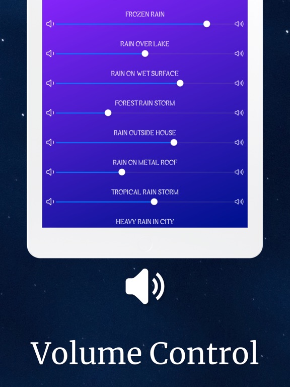 • Individual volume sliders to finely tune your sound mixes. The app remembers your preferred volume settings for future uses.
