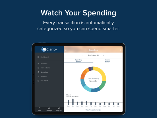 Clarity’s award winning design makes managing money not only easier and more convenient - but a lot more enjoyable and exciting as well. Not only will you be able to see all your financial data in one place, you will be able to visualize that data in meaningful and engaging ways on your phone or tablet.