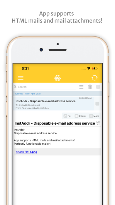 * App supports HTML mails and mail attachments!