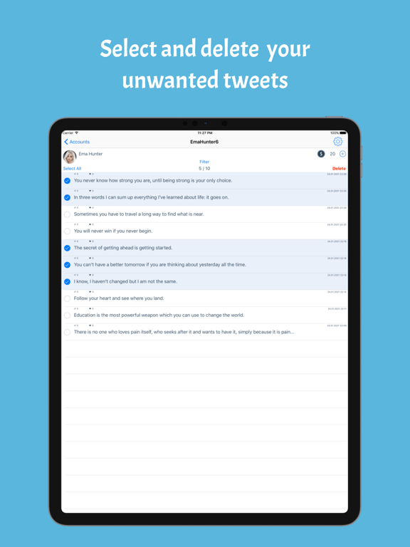 Search, find, filter and delete your old, unwanted tweets with one simple touch