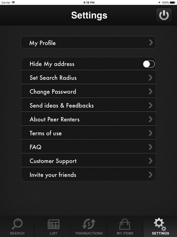 8. Users can invite friends from their Adress Book to use the PeerRenters app.