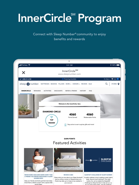 Personalize your experience by completing your wellness profile, view your monthly sleep wellness report, access your InnerCircleSM rewards, opt-into sleep science research and connect to health and wellness apps.