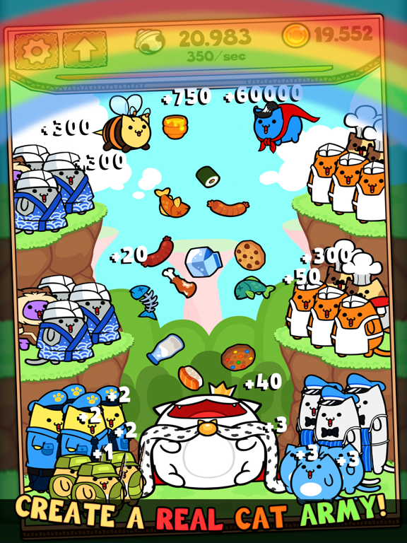 For every piece of food given to the queen, you earn points that can be used to hire new cats.