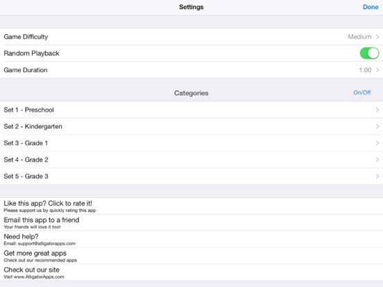 • Want to work on just a few Sight Words? No problem… head to the settings page to turn entire categories or individual Sight Words on and off