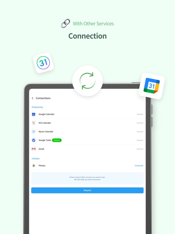 • It can link to Google, Apple, Naver calendars, Google Keep, and Apple Reminders.