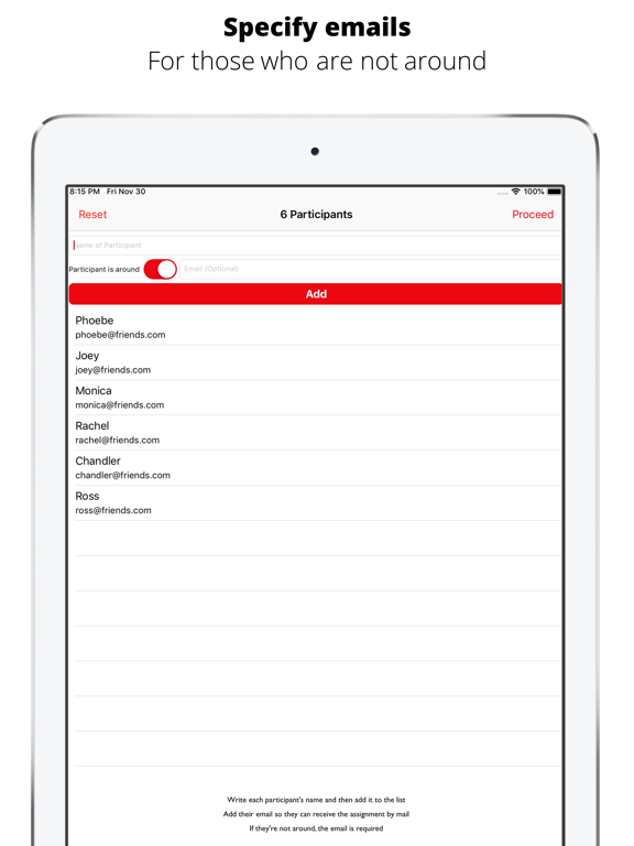 It is extremely simple to use, just enter all the names of the participants and the emails of participants who wish to receive an email either for the sake of being reminded of who they got or if they’re simply not around. Then hit next and the application will summon each person who’s around to discover whose secret Santa he or she is. For those who are not around the app will send emails to them.