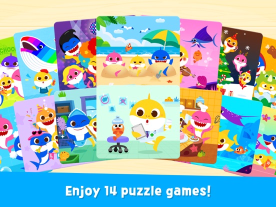 - Discover 14 puzzle boards in total, each featuring colorful Baby Shark illustrations.