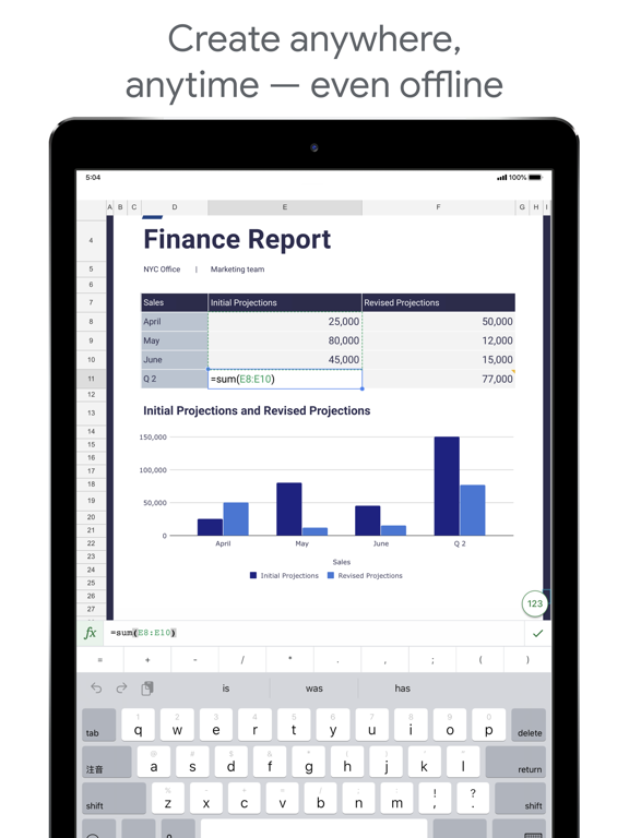 * Create new spreadsheets or edit any that were created on the web or on another device