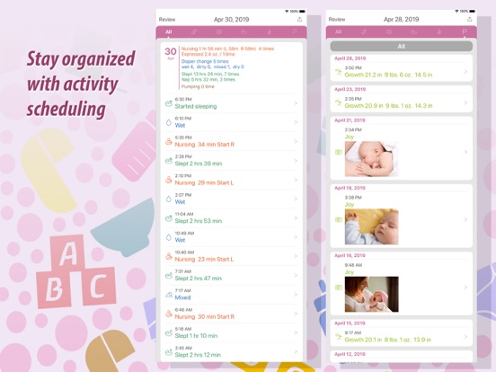 * Sync data among multiple devices for all caregivers or easy sharing of your baby’s progress with others