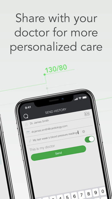 Share your numbers with your doctor between visits so they can give you more personalized care and identify changes earlier. Give peace of mind to family and friends by sharing data, and notifying them when a measurement has been taken.